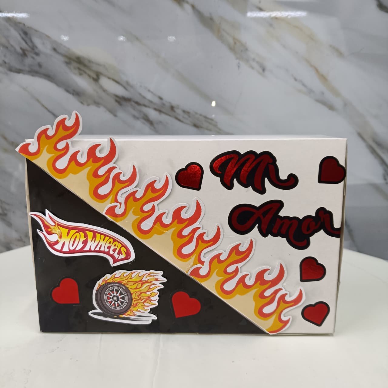 Un regalo creativo y lleno de dulzura que mezcla la adrenalina de Hot Wheels con un toque romántico.