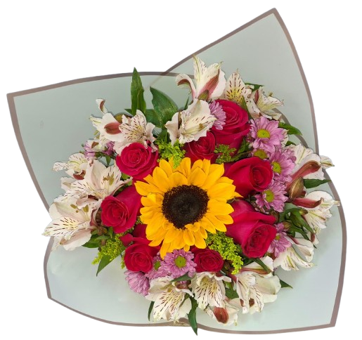 Un ramo alegre y vibrante con astromelias, rosas y margaritas. Ideal para cumpleaños, agradecimientos o simplemente para iluminar el día de alguien. 💐💖